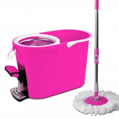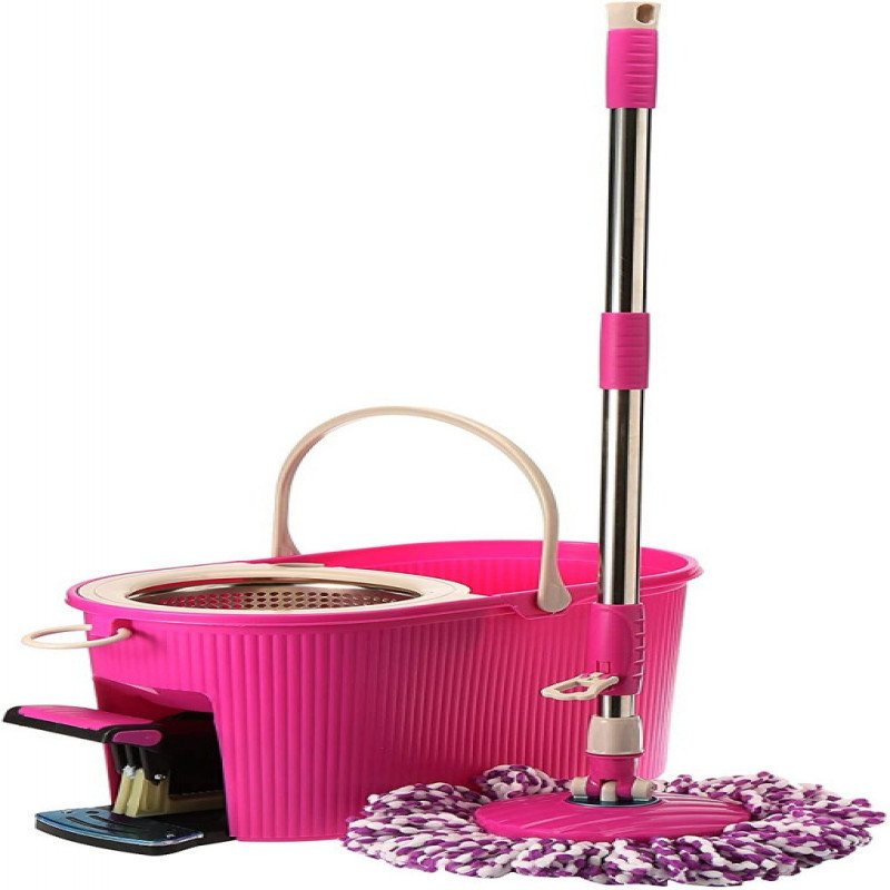 دلو تنظيف مع ممسحة دوارة رائعة بزاوية دوران 360 درجة جودة عالية / وردي
