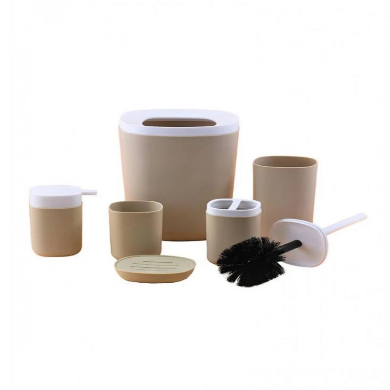 طقم اكسسوارات حمام 6 قطع بيج / أبيض