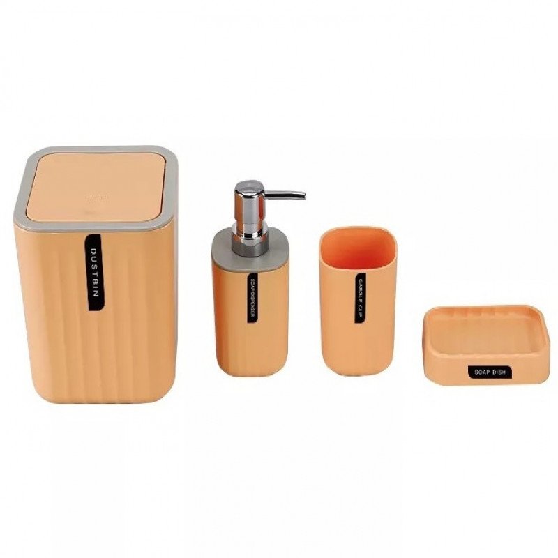 طقم ملحقات حمام من 4 قطع: يحتوي على: (سلة مهملات ووعاء صابون وكوب وحامل لوشن)؛