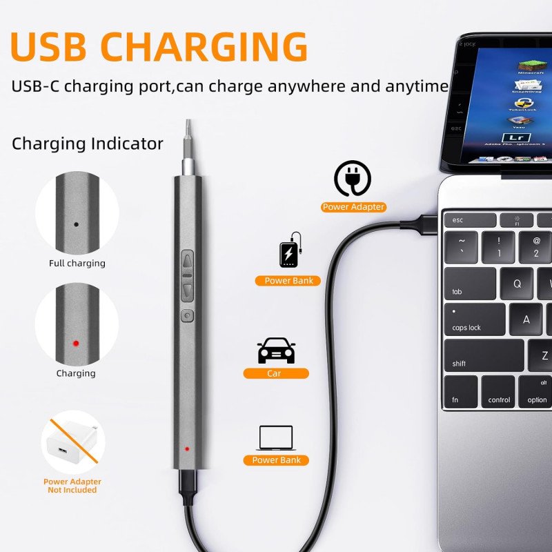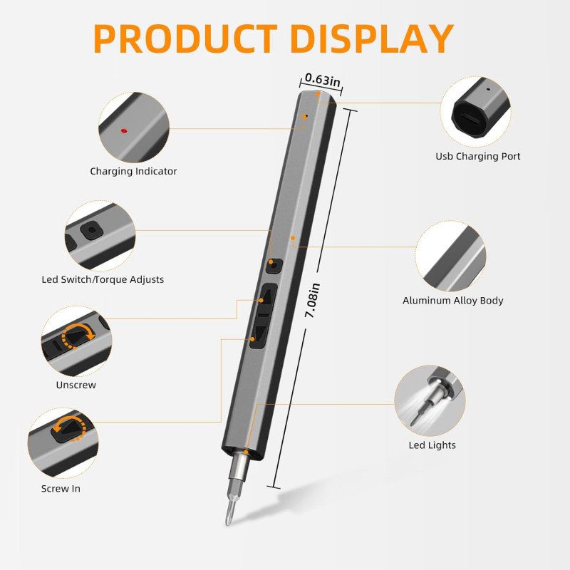يأتي مفك البراغي الكهربائي مزودًا بمغناطيس، ما عليك سوى إدخال القطع اللازمة لبدء استخدامه.
