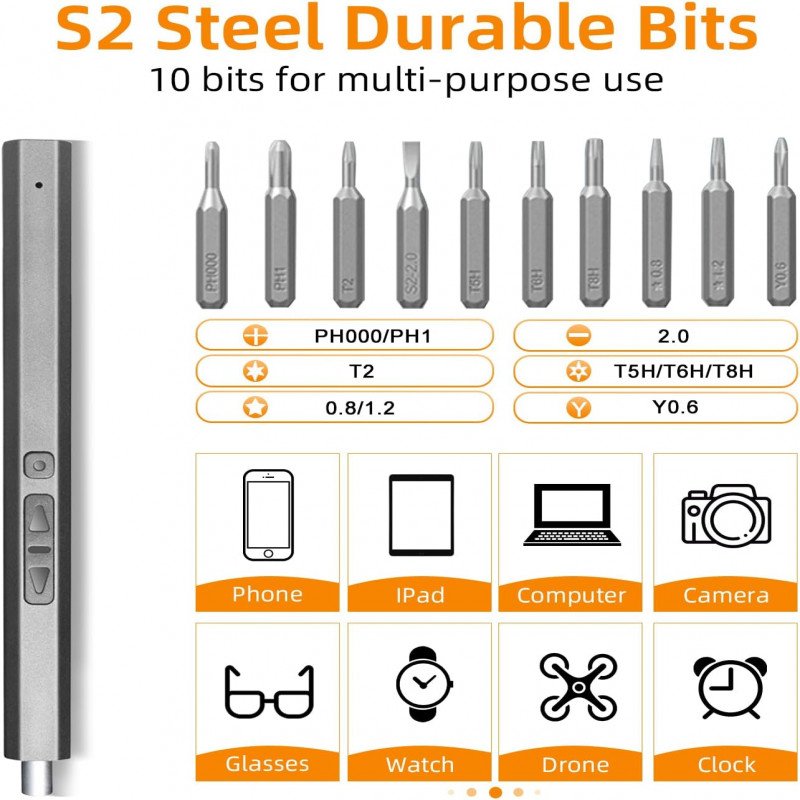 مجموعة المفكات الكهربائية الدقيقة تتضمن 10 رؤوس مثقاب مختلفة قابلة للإزالة