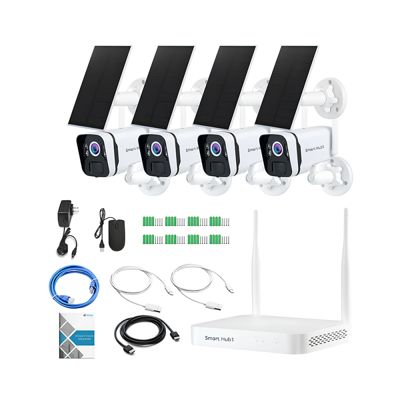 أحدث نظام كاميرات المراقبة اللاسلكية و الذي يعمل بالطاقة الشمسية و يتألف من 4 كاميرات مراقبة لاسلكية بدقة 4 ميجا 2k مع 4 ألواح طاقة شمسية و مسجل فيديو لاسلكي Mini Wifi NVR يربط جميع الكاميرات مع امكانية توصليها بأي شاشة والمشاهدة الفورية حيث يضمن لك هذا النظام الحماية الفائقة للمكان المراد مراقبته إن كان منزلك أو شركتك أو محلك التجاري … و ذلك بفضل ميزاته العديدة .