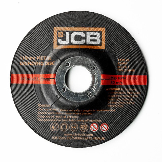 Clean, restore, smooth, and deburr metal surfaces with JCB’s 115mm (4 1/2)aluminium oxide metal grinding discs.